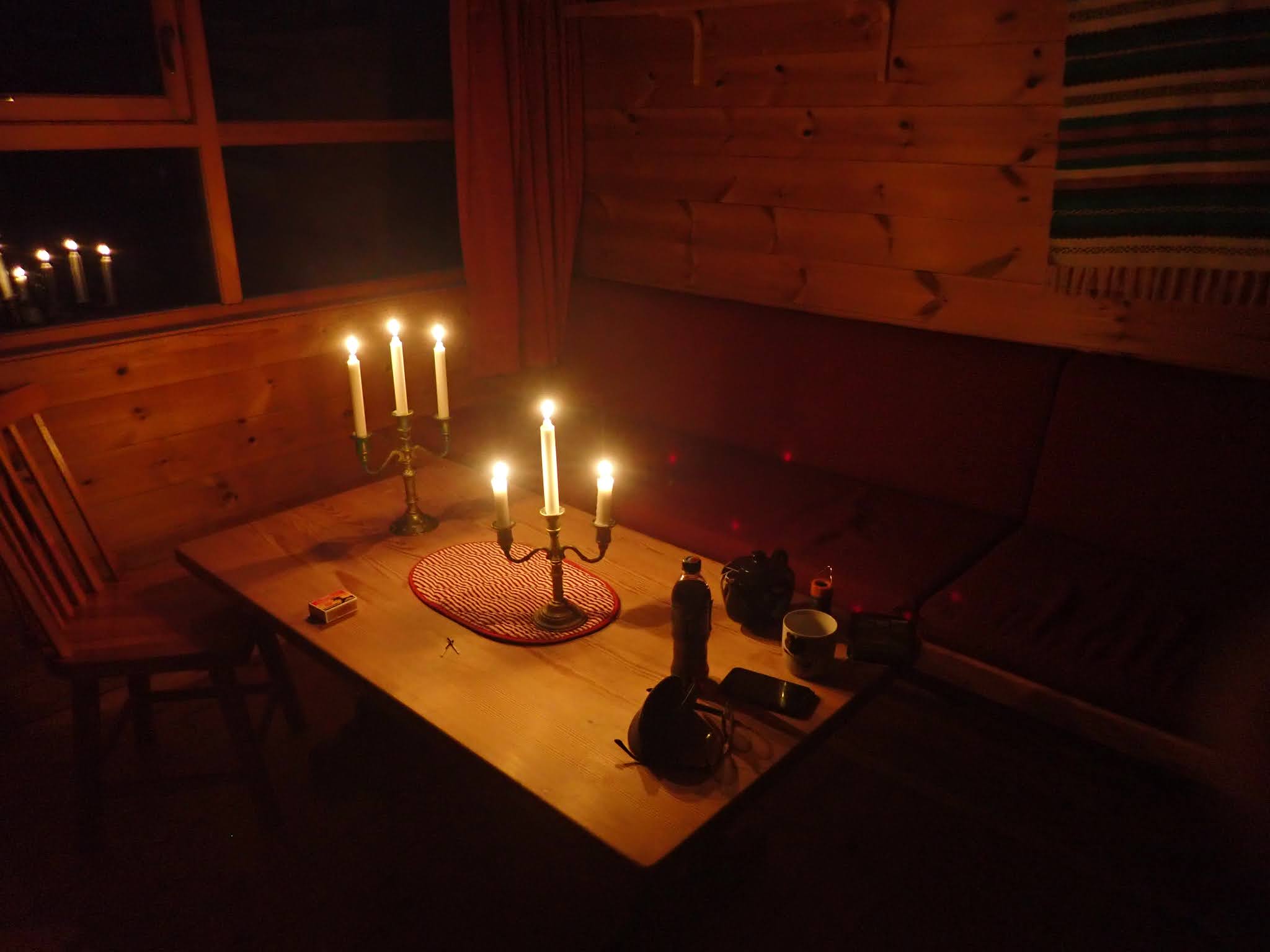 Oppe ved hytta var det tid for mat, og en strekk på benken. Jeg lå en stund, tenkte på returen. Det er 8 kilometer og 300 høydemeter til Hunnedalen fra Blåfjellenden. Jeg hadde brukt litt over to timer inn, og mente det burde være mulig å gå tilbake i omtrent samme fart.
