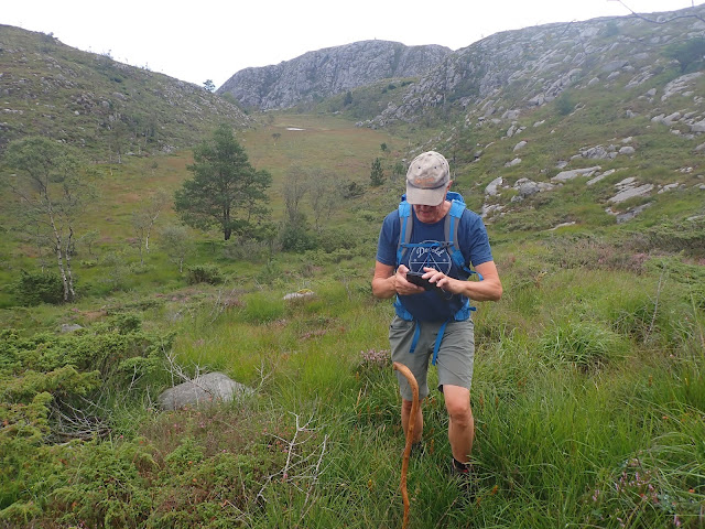 Det er skikkelig kjekt å gå innover heia i godt vær. Tørt i myrsøkkene og lite vann i bekker, gjør det enkelt å komme fram. Det var lett å komme i godt humør. Det var enkelt å komme innover mot hytta.Meningen var å ligge over, men med sosiale forpliktelser hjemme, fant jeg det best å ta nok en dagstur frem og tilbake til Blåfjellenden. Det er nok å gjøre der inne, men denne uka får jeg bruke tid hjemme.