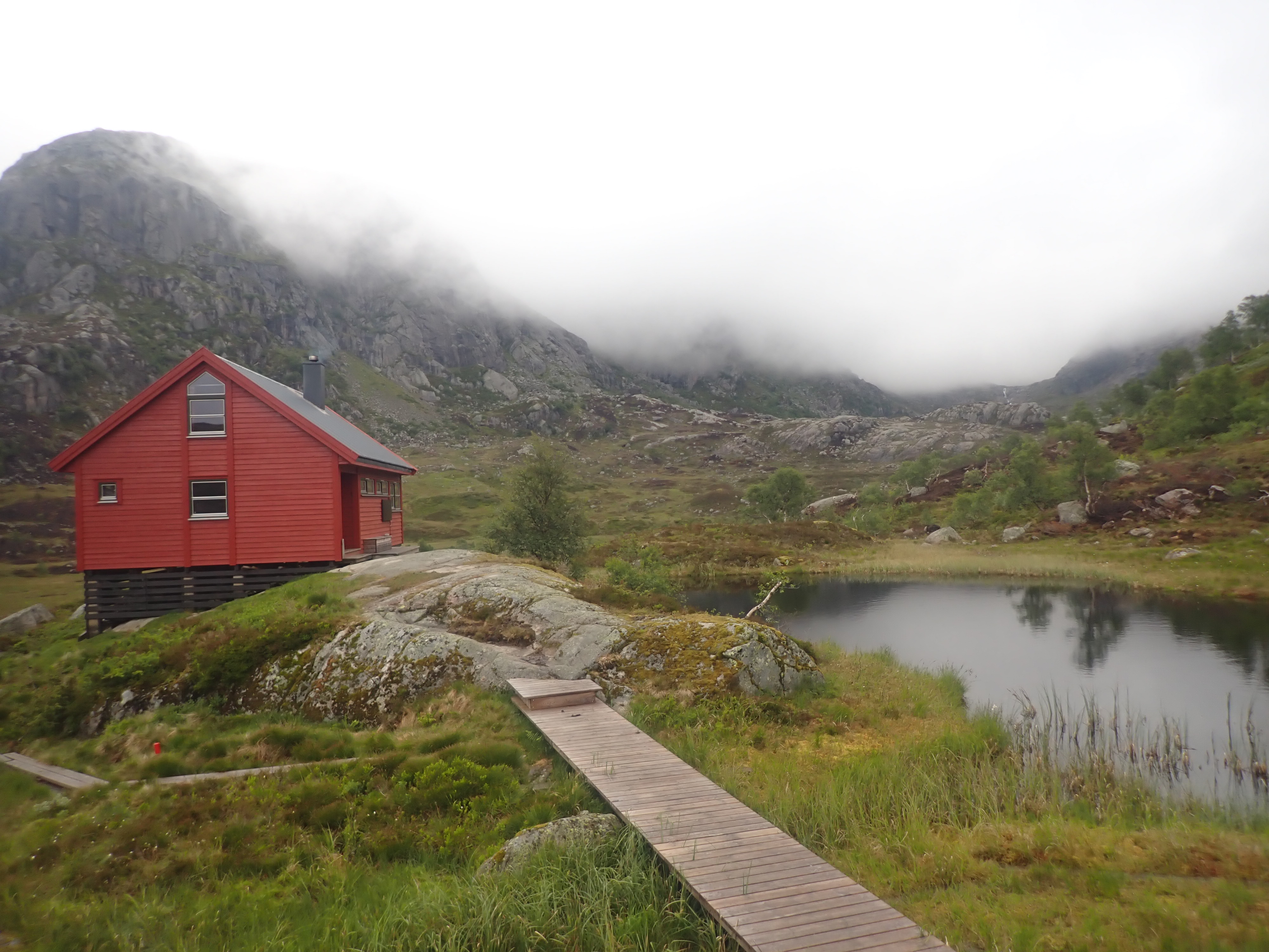 Jeg prøver å få støvsugd hyttene en gang i måneden. Det passet bra å jobbe inne, med mye vind og nedbør ute. Både hovedhytta og annekset ble tatt en omgang, og forhåpentligvis følger nye gjester opp med å holde hyttene i stand.Jeg så et menneske fra jeg gikk innover til jeg kom omtrent ned til Hunnedalen to dager etter. Det blir selvsagt til at jeg kikker etter folk, men jeg synes også det er greit å være alene. Det ble fjordlandmiddag første dagen og Joika og lim neste dag. Fjordland smaker bedre....